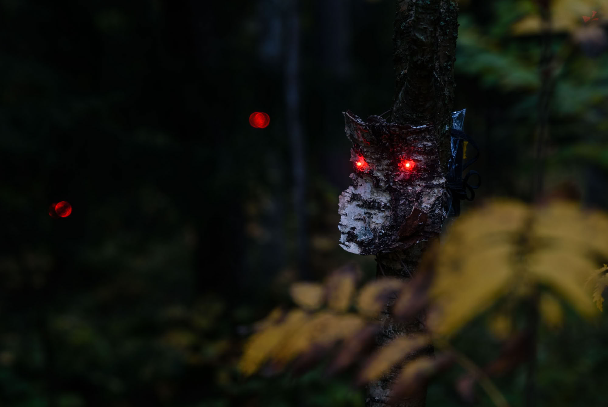 Silmät syttyvät jälleen. Paikkasidonnainen installaatio on jatkoa teoksen Who's There? aloittaneelle metsän olioiden sarjalle. Tällä kertaa tapahtumapaikka on Viherpuiston metsikössä osana Reflektor Vantaa valotaidefestivaalia.